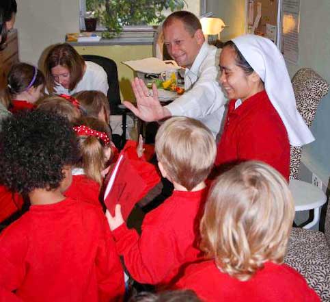 Mrs. Tauna Evans is the Pre-K teacher and Mrs. Meg Peterson teaches the 3/4 year olds class. Mrs. Sara Velling is our Pre-K instructional assistant and Sr. Juanita KialKial assists with the 3/4 year olds.